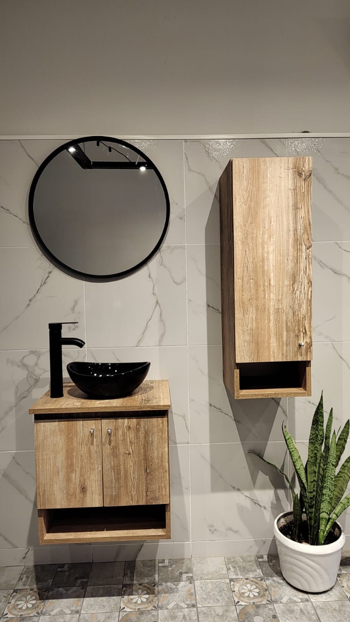 Vanitory Niza con tapa + Bacha Luna + Grifería + Espejo + Tolva flotante